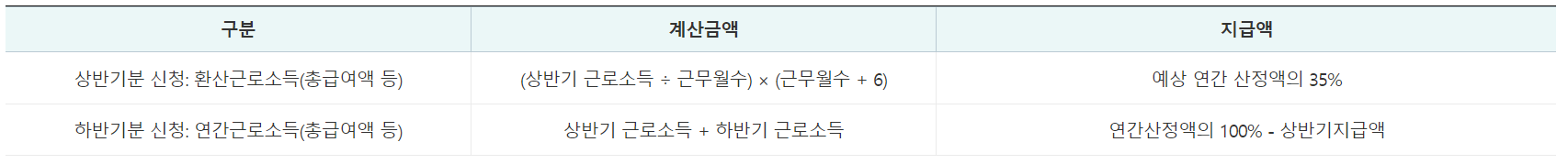 - 근로장려금 반기신청 지급액 산정방식