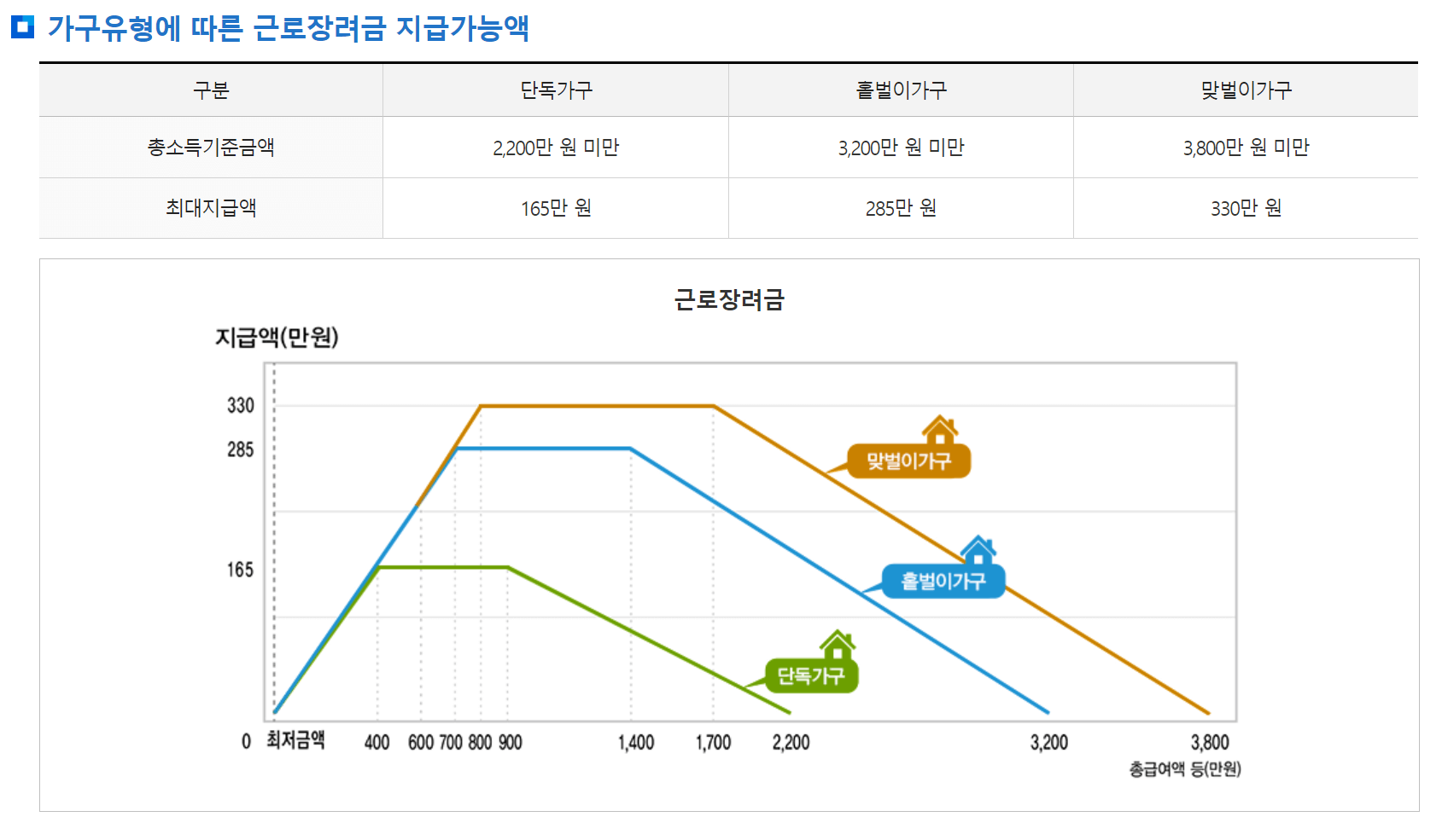 - 홑벌이 가구: 3,200만 원 미만