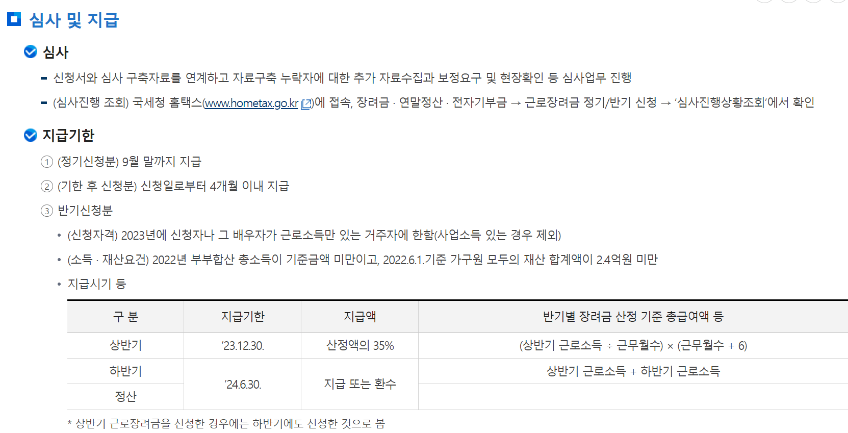 근로 장려금 신청 기간 및 지급일