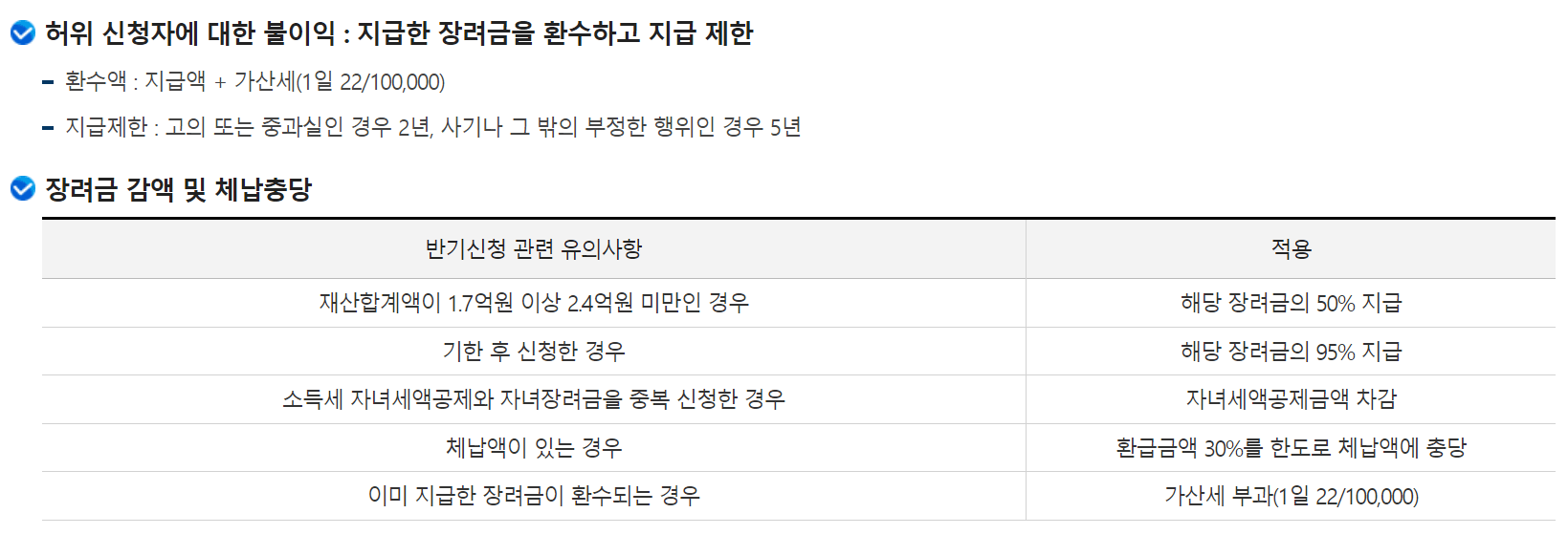 - 자녀 장려금(홑벌이 또는 맞벌이 가구): 7,000만 원 미만